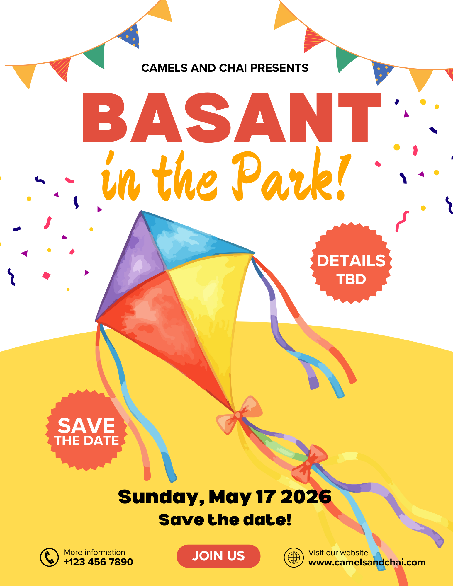 Spring is coming, and so is Basant! Join us for a celebration of one of Pakistan's most beloved festivals: a day of color, music, and kites filling the sky. Basant marks the arrival of spring and has been celebrated for centuries with joy, food, and the thrill of kite flying. Come experience the magic for yourself. Save the date and watch this space for more details!